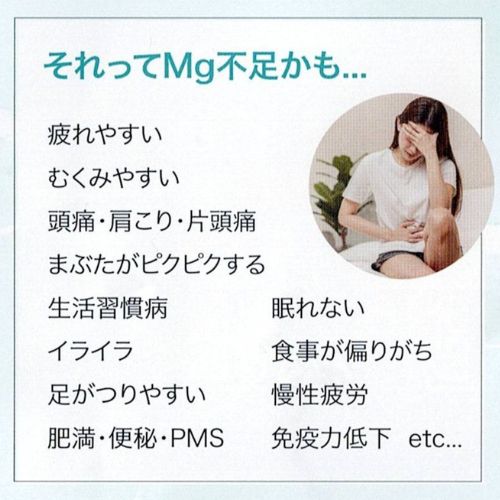 Mgは体内の数百種類もの生体活動に関与しており、不足すると様々な影響があります。